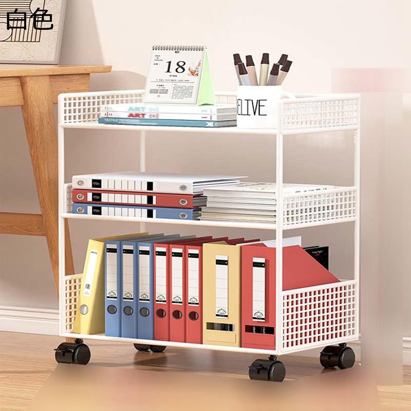 折り畳み式ブックワゴン ファイルラック 2段 3段 大容量 本ラック 回転キャスター付き スリム 制動可能 スチール製 通気性 頑丈 天板 書類整理 教科書 漫画 雑誌 収納棚 オフィス 組み立てが簡単