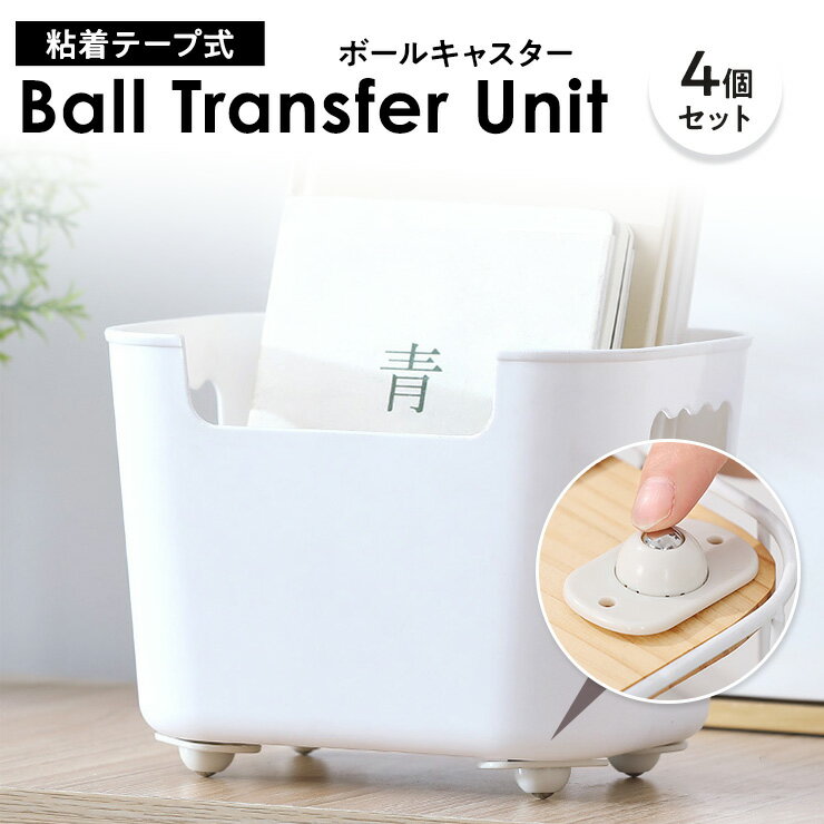 粘着テープ式ボールキャスター 4個セット ボールキャスター 収納 収納グッズ ミニキャスター キャスター ボール型 両面テープ 両面シール 貼り付け 簡単 ワゴン