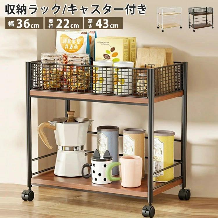 キッチンワゴン キャスター付き スリム 移動式木棚 キッチンラック 木製 キッチン収納棚 2段 2段ワゴン テーブルワゴン スリムラック キッチン オープンラック プリンターラック 北欧 ホワイト ウォールナット オーク ローラー付き木製シェルフ