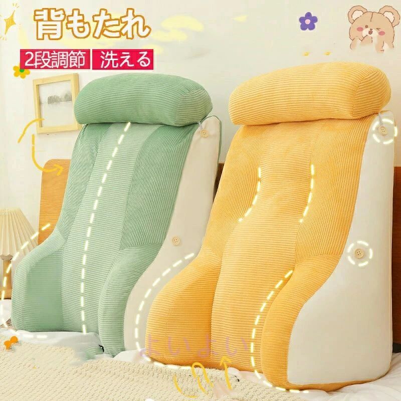 素材 生地:ポリエステル中身:ポリエステル綿特徴 ■4wayの背もたれクッション座る時には縦に。リラックスモードの時は横に。椅子のようにフローリングに置いても、ハイバックだからベッドの上で背もたれ替わりに。■テレビまくらとして柔らかいもたれ心地のクッションチェアは、テレビ枕としてもちょうどよい傾斜の枕です。■うつ伏せ寝の方にも俯せの姿勢も楽ちんなうつぶせ寝クッションは、サポートクッションのようにアームレストがないから狭い場所にもコンパクトに収まります。■枕は取り外し可能3段階の調節と取り外して足枕にもなり、女性には特に嬉しいソファークッション!寝ている間にむくみも解消?■妊婦さん?子育てママにおすすめマタニティ期や授乳するときも腰当ていらずで楽な姿勢がとりやすい長クッションです。洗濯 ●装飾品の中に安全ピンを使用したものがございますので、ご着用やお洗濯等のお取り扱いに十分ご注意ください。●色落ちや色移りすることがございますので、他のものとは分けて洗濯してください。