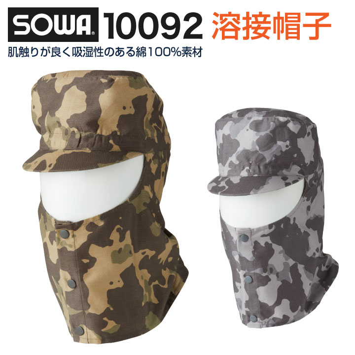 【期間限定10%OFF】溶接帽子 溶接ぼうし ツバ有り・たれ無し 迷彩 防炎 頭巾 作業服 作業着 綿100% SOWA 帽子 sw-10092