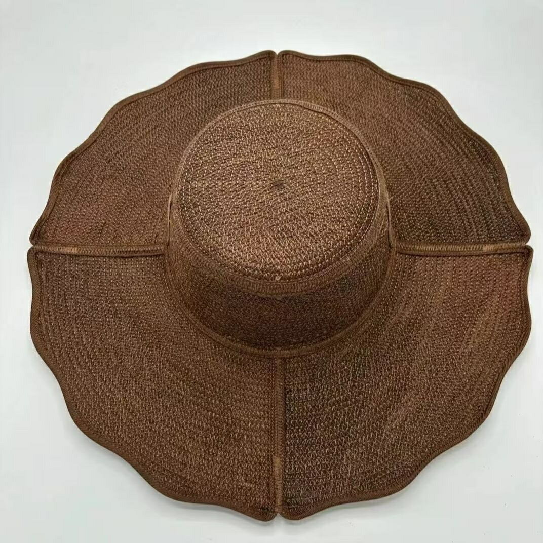 棕櫚(シュロ) 手編みのレトロ日除け帽子|通気性抜群の天然素材×小顔効果シルエット 帽子 手作り 涼しい帽子 / 棕櫚帽 / 透け感 / 個性派ファッション夏帽子 天然素材 棕櫚(シュロ) 手編みのレトロ日除け帽子 涼やかな夏を、帽子から。熟練の職人がひとつひとつ丁寧に編み上げた、レトロデザインの手工編み日除け帽子。クラシックなブラウンの色合いが、落ち着きのある上品な印象を演出します。👒 機能性とデザイン性を両立:たっぷり広がる波打つつばは、日差しをしっかりカットしつつ、女性らしい優しいシルエットに。通気性の高い天然素材を使用し、蒸れにくく、長時間の着用でも快適。小顔効果のあるクラウン設計で、顔まわりをすっきり見せてくれます。非常に丈夫で、丁寧に扱えば何十年も長く使える耐久性があります。🧵 素材とディテール:手編みの天然繊維(棕櫚系)使用。現在は黒色のコットン紐(あご紐)を採用しており、しっかり結べて安定感も◎(※画像は旧仕様です)。📏 サイズ(約):帽子の直径:45cm深さ:11cm小サイズ頭囲:50〜54cm大サイズ頭囲:55〜60cm(内側に調整紐あり/フィット感を調整可能)🌿 こんな方におすすめ:人と被らない帽子を探している方小顔効果のある日除け帽子をお探しの方ナチュラル素材・手作りにこだわる方 5