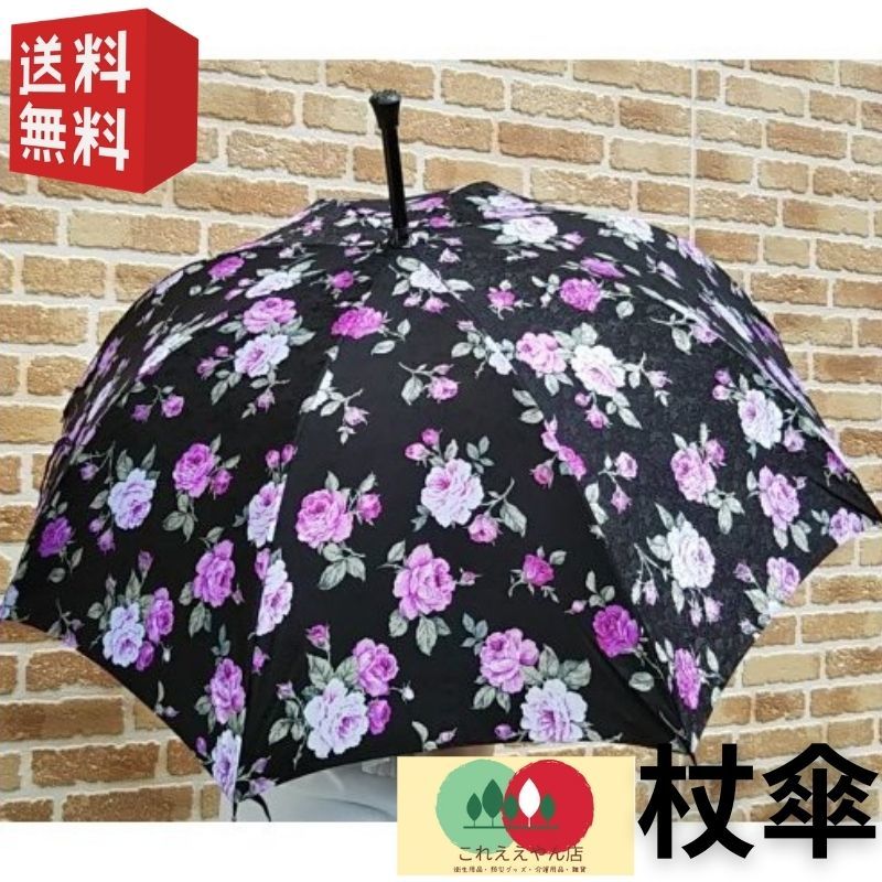 杖傘 晴雨兼用 アスター洋傘(890-2)婦人 バラ柄 黒×パープル AS1003 レディース 杖先替えゴム1個付き 名入れOK UVカット プレゼント ギフト 誕生日 おばあちゃん 歩行サポート ステッキ傘 日傘 花柄 軽量 グラスファイバー アルミニウム 70代 80代