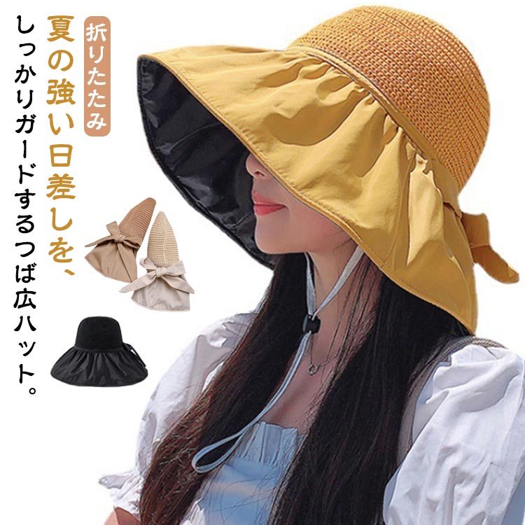可愛い 日よけ帽子 レディース UVケア帽子 折りたたみ ツバ広 送料無料 紫外線対策 春 UVカット リボン付き メッシュ 小顔効果 シンプル おしゃれ 大きいサイズ つば広ハット 熱中症対策 遮光 コンパクト あごひも付