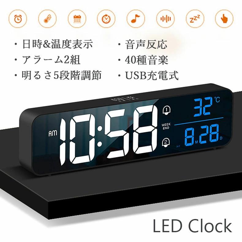 \Point×10/ 置き時計 目覚まし時計 LEDデジタル時計 スヌーズ 温度計 40種音楽 日時 輝度調節 明るさ5段階調節 アラーム 壁掛け時計 おしゃれ オシャレ 静音 北欧モダン 非電波時計 見やすい 長時間航続 かわいい キャンパスウォールクロック 部屋飾り 寝室 子供部屋 卓上