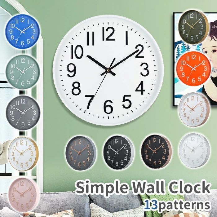 シンプルでおしゃれな壁掛け時計です。 バリエーションも豊富で、全部で13種類のパターンがございます。 リビング、寝室、書斎などに掛けたり、またはインテリアとしての使用にも良いかもしれません。 視認性の高いブロック体の数字なので子供部屋にもおすすめです♪ 一人暮らしを始める方にも♪ ※電池は付属しておりません。 【サイズについて】 画像をご参照ください。 【カラーについて】 生産ロットにより柄の出方や色の濃淡が異なる場合がございます。 お使いのモニターや撮影時の光の加減などにより 画像と実際の商品のカラーが異なる場合もございます。 予告なしにカラーやデザインなどの変更がある場合もございます。 【素材について】 ABS樹脂(ABS)