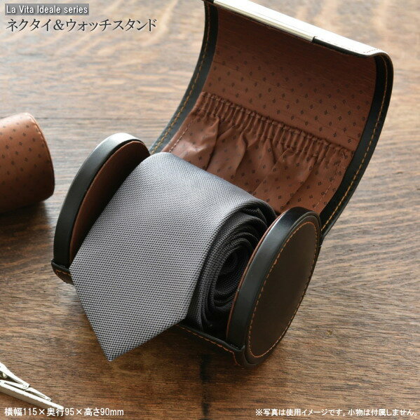 LA VITA IDEALEシリーズ ●高級感のあるブラックのフェイクレザーに、ブラウンのステッチが効いたお洒落なデザインの男性向け収納ケースです。 ●ネクタイを丸めて、コンパクトに収納&持ち歩き。旅行やお仕事の出張時にあると便利な一品です。 ●腕時計収納用のクッションが付属しており、腕時計も収納できます。 ●内張りの生地はシルクのネクタイ生地のような滑らかな質感の生地を使用しています。 ●誕生日プレゼントや父の日ギフト、新社会人になる学生へのお祝いなどの贈り物にも おすすめです。 [商品仕様] ●商品サイズ(約)/幅115×奥行95×高さ90mm ●素材/合成皮革(PU)、ポリエステル、スチール他 ●生産国/中国 ●その他/箱入り ※商品と写真で色合いが多少違う場合がございますがご了承下さい。 ※生産ロットにより、生地の色合いが多少違う場合がございます。 ※手作りの為、内寸など個体によって微妙に差があります。予めご了承ください。 ※商品写真上の演出物(ネクタイや腕時計)は商品に含まれておりません。 ※こちらの商品は在庫数は少なめに設定されております。ギフト等でまとまった数量をご希望のお客様はお問い合わせ下さい。