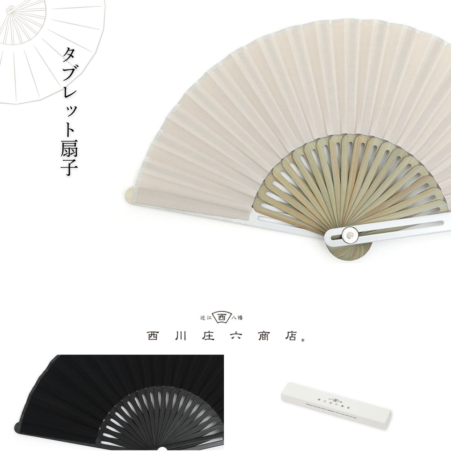 商品についてのお問い合わせはお電話でも受け付けております。 商品説明 扇子の「仰々しさ」を手放す。 西川庄六商店 タブレット扇子 「扇子は便利だけれど、和風すぎて自分の服装や持ち物と合わない…」 「いかにもな扇子を職場でパサッと広げるのは、少し気が引ける」 そんな男性にこそ選んでいただきたいのが、この「タブレット扇子」です。 400年の歴史を持つ老舗・西川庄六商店が、扇子の固定概念を覆し、まるで最新のスマートデバイスのような一本を作り上げました。 これまでの扇子にはないフラットなフォルムが、どこか未来を感じさせるデザイン。 閉じた状態では扇子である事に気づかないほどシンプル。 コンパクトで携帯にも便利です。 ■ 扇子であることを隠す「フラット」なデザイン 最大の魅力は、閉じた時の直線的でフラットなフォルム。 従来の扇子のような凸凹や装飾が一切なく、デスクの上に置いてあっても、タブレットペンシルやモバイルバッテリーのような「洗練されたガジェット」にしか見えません。 マットな質感の竹骨とコットンポリエステルの生地が、クールで未来的な雰囲気を醸し出します。 ■ ビジネスシーンに馴染むスマートさ 無駄を削ぎ落としたソリッドなデザインは、スーツやジャケットスタイルと相性抜群。 商談の合間や、通勤中の電車内、カフェでの作業中など、どんなシーンで取り出してもスマートに決まり、 周囲に「おっ、おしゃれだな」と思わせる魅力があります。 ■ 贈り物としての絶対的なセンス 西川庄六商店のブランドロゴが入った、専用のオリジナル紙箱に入れてお届けします。 「扇子」という枠を超えたスタイリッシュなプロダクトは、 お父様や旦那様、彼氏様へのプレゼントとしておすすめです。 商品情報 ブランド 西川庄六商店 サイズ 開いた形状 : H 18cm W 32cm 閉じた形状 : H 18cm W 2.5cm カラー ブラック 材質 コットンポリエステル (扇面) / 竹 (扇骨) メーカー名 西川庄六商店 配送・ギフト ネコポス 不可 ギフト包装 ラッピング / ギフトカード / 熨斗 よく利用されるシーン 内祝い/結婚祝い/退職祝い/結婚記念日/誕生祝い/銀婚式/金婚式/結婚式お返し/出産祝い/お祝い返し/お返し/お祝い/入学祝い/就職祝い/還暦祝い/御祝/お礼/プレゼント/誕生日/贈り物/ギフト/引越し祝い/新築祝い/開店祝い/記念日/還暦/古希/喜寿/傘寿/米寿/卒寿/白寿/お中元/御歳暮/2次会/忘年会/家族/母の日/お母さん/父の日/お父さん/敬老の日/新年の挨拶/バレンタイン/ホワイトデー/クリスマス/10周年/100周年/周年祭/お土産/粗品/学校設立/法人設立/上場記念/周年祭/設立記念/独立記念/引き出物/ノベルティ/法人/企業/コンペ/上司/社長/年上/20代/30代/40代/50代/60代/70代/80代/90代/日本/伝統工芸/伝統文化/和風/和/モダン/北欧/シンプル