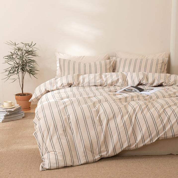 洗いざらし ダブル 綿100% 北欧 クイーン 掛ふとんカバー3点セット 枕カバー ストライプ 通気性 優しい肌触り 布団カバーセット 洗える シングル 四季通用 掛け布団カバー 超柔らかい 寝具カバーセット ボックスシーツ/フラットシーツ 4点セット ゴムバンド