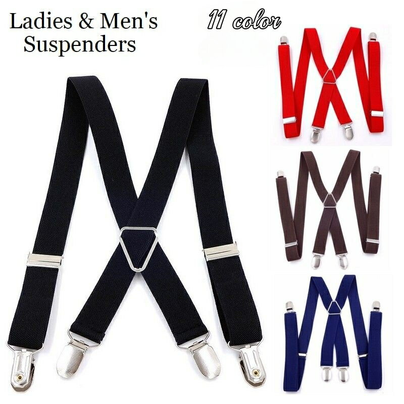 送料無料 サスペンダー X型 レディース メンズ 男女兼用 クリップ 4点留め 吊りバンド 長さ100cm ズボン吊り ゴム 伸縮性 服飾小物 無地 シンプル ソリッドカラー 女性用 男性用 ユニセックス おしゃれ 婦人用 紳士用 普段使い デイリー 外出 お出掛け