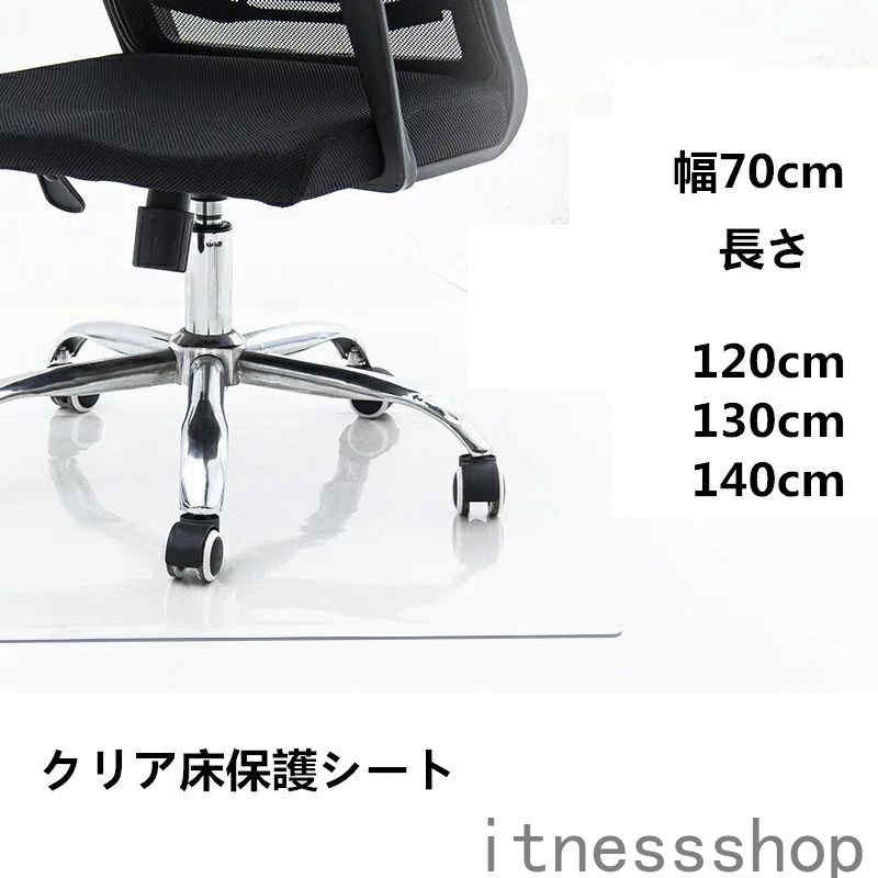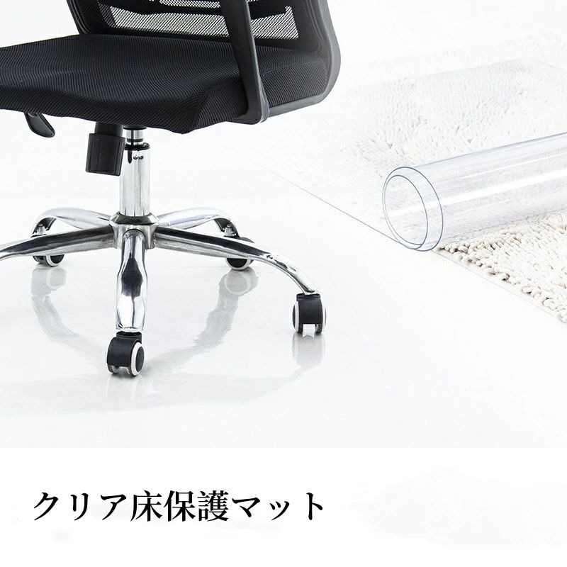 「自由に使います」幅90 cm×奥行120 cm×厚さ1.5 mmの机下、椅子、フロア、床マックは、他の場所で保護シートを使うとしても、欲しいサイズによってカットできます! 「傷防止、滑り止め」軟質PVC製の保護マット、厚さが1.5 mm、このマットを部屋に置くと、どんな家具でも傷を気にしなく、耐熱性もあり、デスクマットや床暖房シートとしても非常に活躍! 「お手入りが簡単」チエアマットは透明なPVC製なので、耐水性がよく、酒、油、ジュースなどを上にこぼしても綺麗に拭け、静電気も防止でき、乾燥な環境に使用してもOK、半透明で、何の圧迫感もなく、気軽に使ってください! 「温かいヒント」御購入したマットは、巻いている状態で届きます。20度以上の室温で、1日間開けて使用すると、巻きが消えます!※冬に温度が低く、生地がやや硬くなり、エッジ側が少しまげるのは正常ですから、御心配しないでください。逆巻きで使用すると、より平らになりやすい!マットに重いものを置くことも早く平らに戻せます!