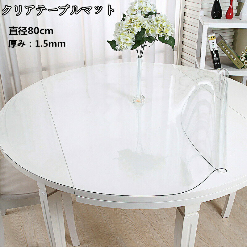床保護シート 透明テーブルクロス クリアチェアマット 円形 直径80cm 厚さ1.5mm 透明 テーブルマット デスクマット マット