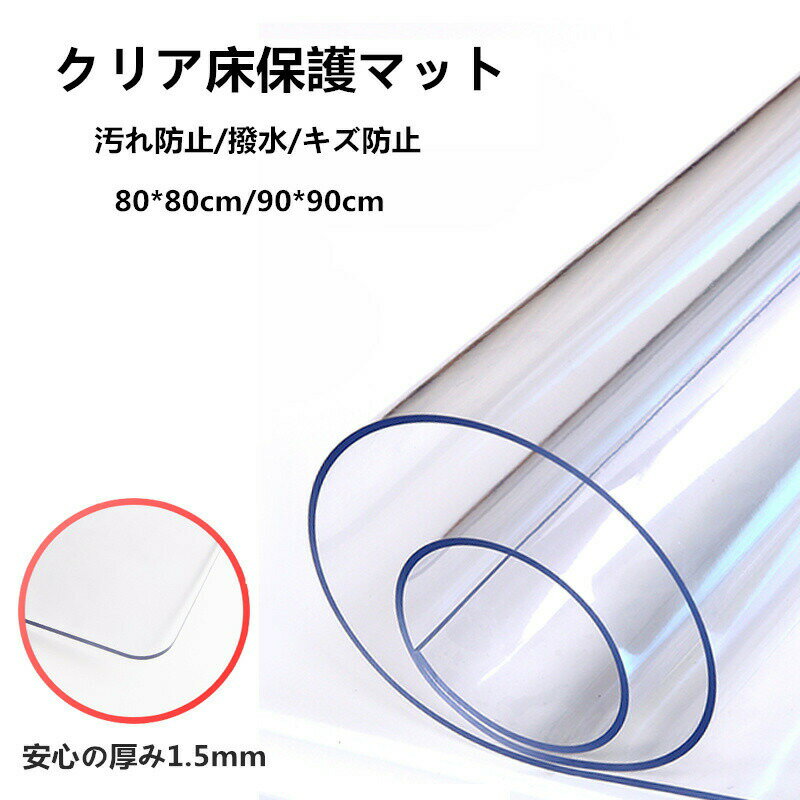 床保護シート クリアチェアマット 凹み防止 冷蔵庫マット チェアマット 透明 厚み1.5mm おしゃれ 撥水 汚れ防止 キズ防止 保護 カーペット 透明テーブルクロス テーブルマット デスクマット テーブルクロス キッチン用品 80*80cm 90*90cm PVC kz194z