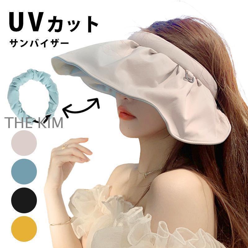 uvカット サンバイザー つば広 レディース 日焼け予防 帽子 2way 帽子 紫外線対策 女性 コンパクト 洗える 海水浴 プール 水遊び