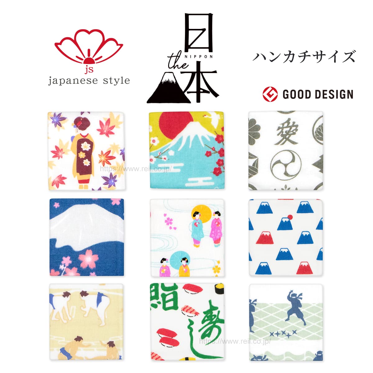 日本製 片面ガーゼ ハンカチ ハンカチタオル 和柄 日本の名物柄 タオル 和風 泉州タオル 海外の方のお土産や プレゼントに 汗取り (japanese style the 日本/ジャパニーズスタイル ザ・ニッポン)