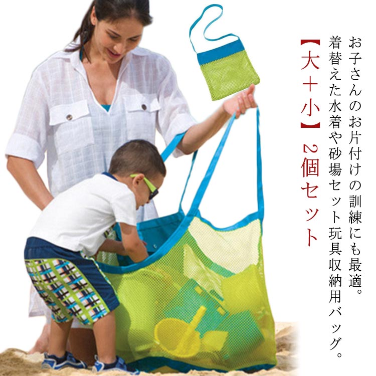 メッシュバッグ 2個セット おもちゃ お砂場セット 収納袋 メッシュ 収納バッグ 砂遊び 砂場セット 玩具 着替え服 収納 バッグ 大きめ 小さめ 折り畳み コンパクト メッシュ トートバッグ ビーチ プール 海辺 砂遊び 【送料無料】