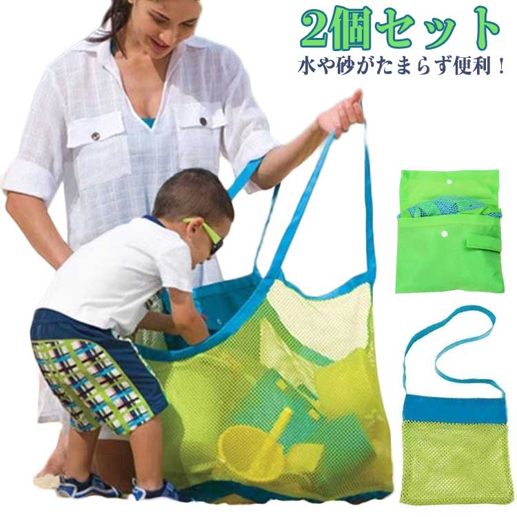 2個セット ビーチバッグ メッシュ 大きい 大容量 おもちゃ袋 おもちゃ収納 砂場 砂遊び 水遊び 防水 エコバッグ メッシュバッグ メッシュトートバッグ 砂場セット収納 ビーチおもちゃ収納 ランドリー レジャー トラベル 子供 キッズ 便利 アウトドア 【送料無料】