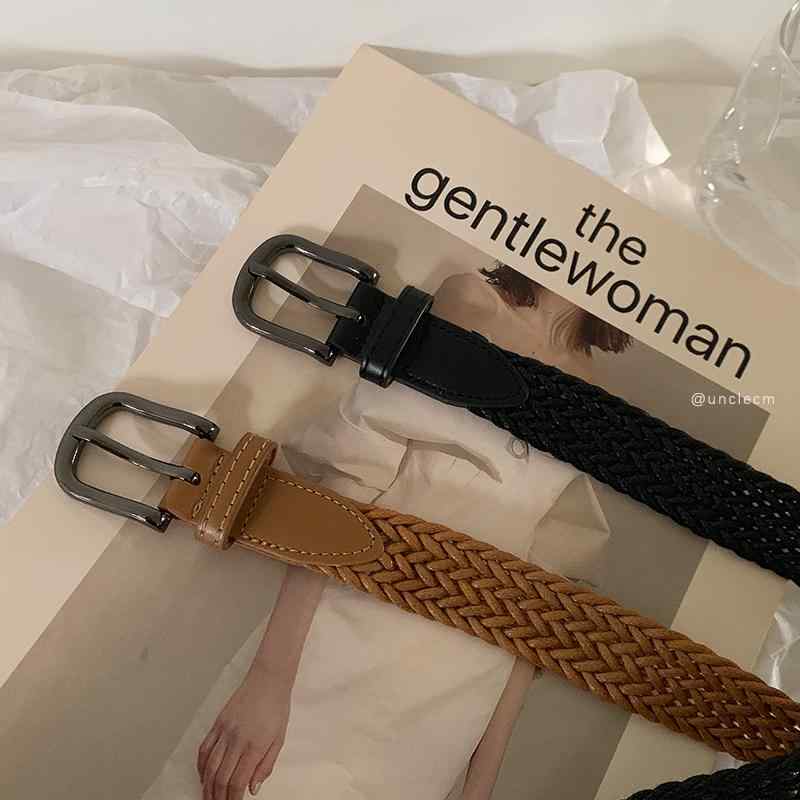 ベルト レディース 韓国 穴なし メッシュ 編み込み バックル合金 シンプル おしゃれ ジーンズ パンツ スカート カジュアル 黒 茶色