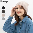 ■スーパーSALE特別クーポン配布中■帽子 ニット帽 ビーニー リブ ブリーチ加工 無地 手洗い シンプル 綿混 アクリル混 暖かい 防寒 冬 黒 レディース Honeys ハニーズ ニットビーニー