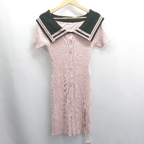 ◇ ⊂◎●未使用● SAISON DE PAPILLON セゾンドパピヨン リブニット 半袖 膝上丈 ワンピース サイズL ピンク レディース E 【中古】
