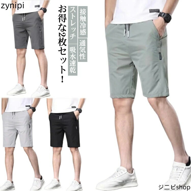 接触冷感 ショートパンツ 夏 ゴルフ ショートパンツ パンツ ショートパンツ 涼しい ストレッチ ボトム 短パン ショート丈 スポーツ ズボン アウトドア アイスシルク クライミングパンツ 2枚組 膝上 クライミング ショーツ ウエストゴム ゆったり 海 夏 春 メンズ