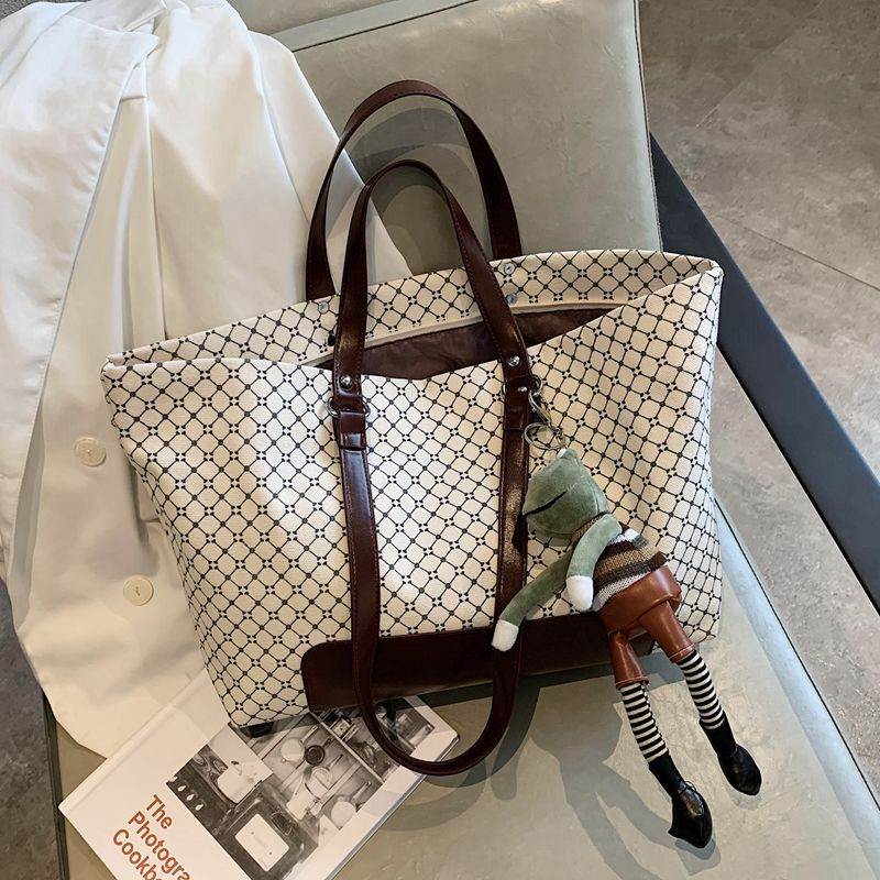 2025年新作春 レディートートバッグ、コントラスト ステッチ装飾、大容量、手提げ & ショルダー ショッピングバッグ