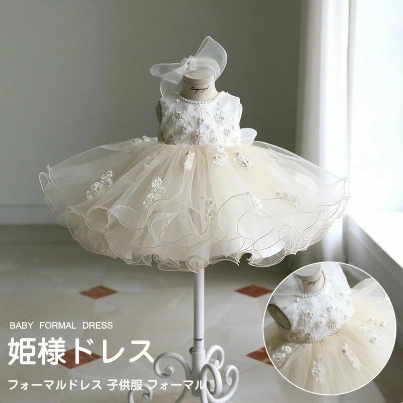 ベビー ドレス 赤ちゃん フォーマル ピアノ パーティー セレモニー 100日祝い 結婚式 発表会 七五三 丸ネック 真珠 リボン チュール 誕生日 お祭り 出産祝い 花見 チュールドレス チュチュ ワンピース スカート 女の子