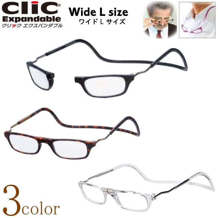 老眼鏡 正規品 クリックリーダー 日本製 エクスパンダブル ワイド L ラージ 大きい サイズ CliC readers Expandable 磁石 首掛け おしゃれ シニアグラス リーディンググラス 男性用 女性用 マグネット 開閉式 読書用メガネ 辞書 新聞 40代 50代 母の日 父の日 敬老の日