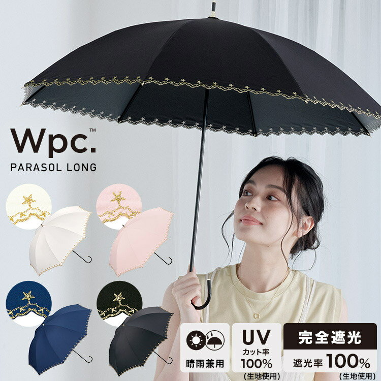 【Wpc.公式】日傘 遮光星柄スカラップ【完全遮光100% 完全UVカット率100%生地 長傘 撥水 晴雨兼用 50cm レディース 女性 長日傘 おしゃれ 遮熱 スター 柄物 ゴールド 金 刺繍 プレゼント】