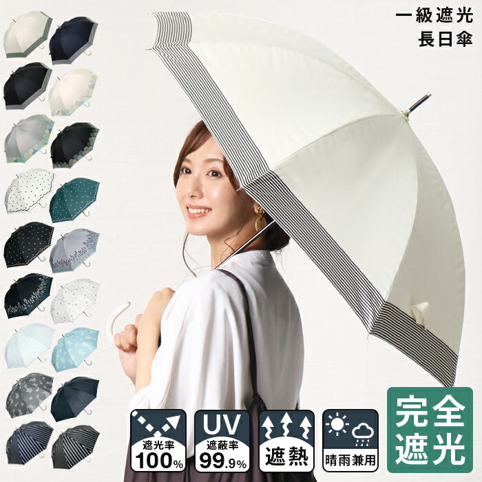 日傘 完全遮光 遮光率 100% UVカット 99.9% 紫外線対策 UV対策 晴雨兼用 レディース ボーダー ストライプ 花柄 ドット シンプル お洒落 かわいい 可愛い 長傘 【送料無料】
