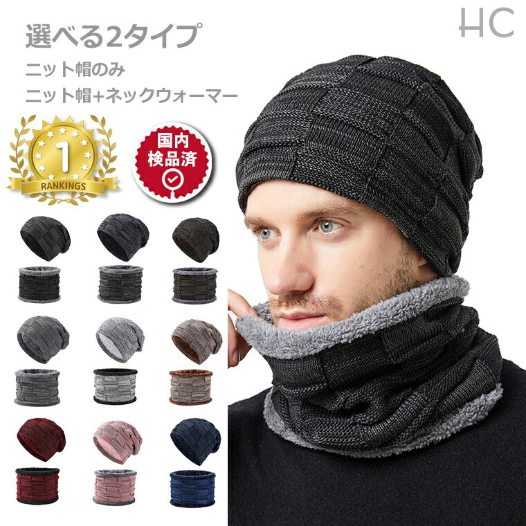 【リニューアル品】\楽天ランキング1位4冠達成/ ブロック編み 選べるニット帽 ニット帽&ネックウォーマーセット ビーニー ふんわり 暖か裏ボア ロング メンズ レディース 暖かい ニット帽子 男性 女性 ゆったり 長い 小顔シルエット 帽子 柄 秋冬 秋 冬