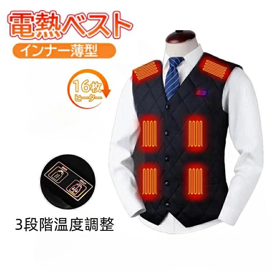 PSE認証済 2024年新作 電熱ベスト インナーベスト16枚ヒーター ヒーターベスト 男女兼用 電熱ベスト 薄手 usb充電 3段階温度調整 電熱ベスト 洗濯可 電熱ウェア ヒートベスト 暖房服 ヒーター内蔵 ヒートジャケット USB 給電式 大きいサイズ