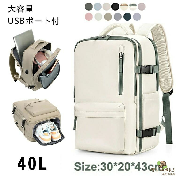 40L 大容量 リュック 男女兼用 トラベル ビジネス ビジネスリュック バックパック 機内持ち込み 軽量 通勤 帰省 旅行 リュック 撥水生地 飛行機 防災 避難バックパック 機内持ち込み サイズ 地震 災害対策 バックパック リュックサック レディース メンズ