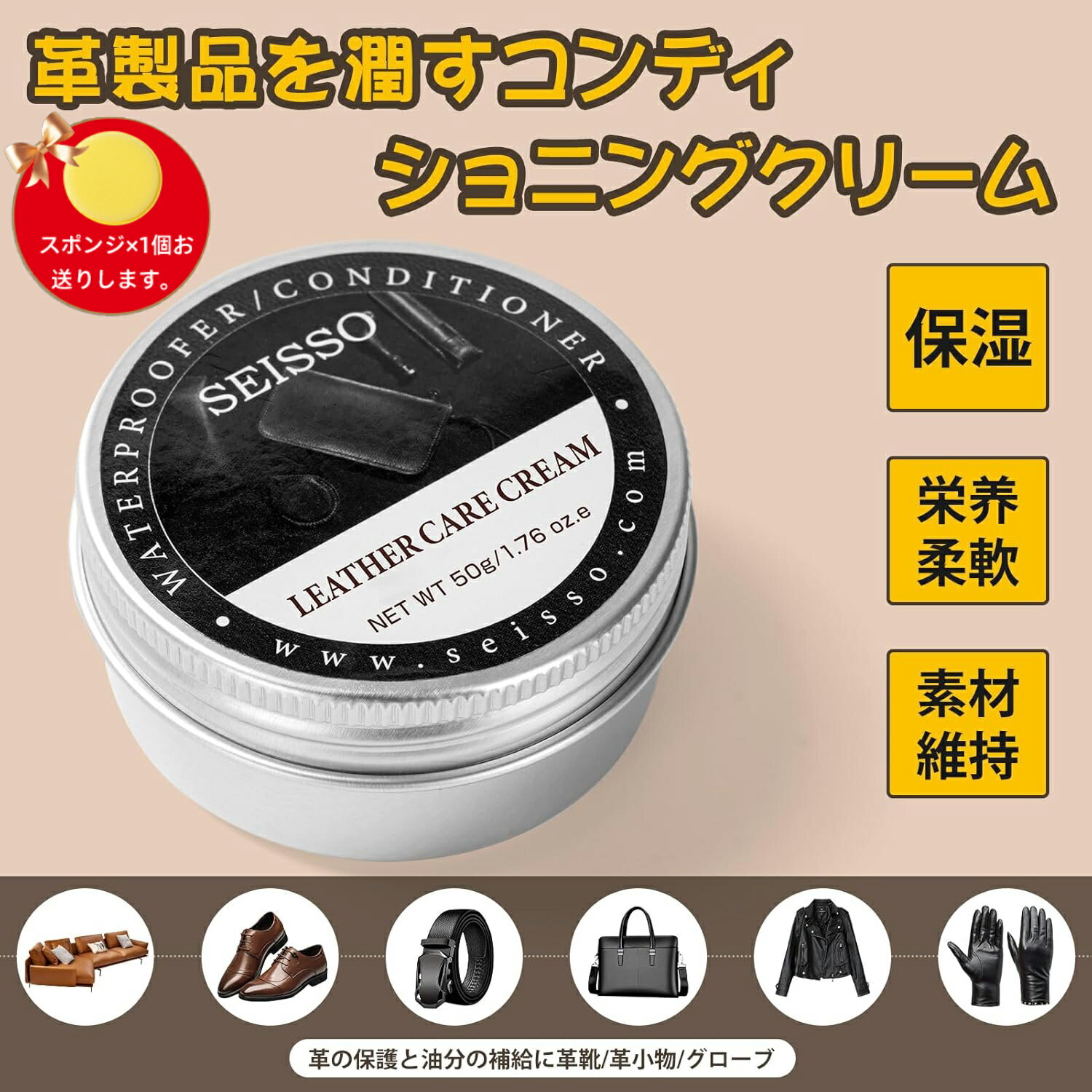 【BFセール10倍P&8%OFF券付】 SEISSO 皮革ケアクリーム 50g 皮革用 革製品 栄養 保革 防水 革を柔らかく 革小物 靴磨き 革ジャン ソファ バッグ オフィスチェア 財布 グローブ 皮革ケアオイル 植物油脂革 レザー 手入れ 革靴 靴 クリーム 保革 保湿 栄養