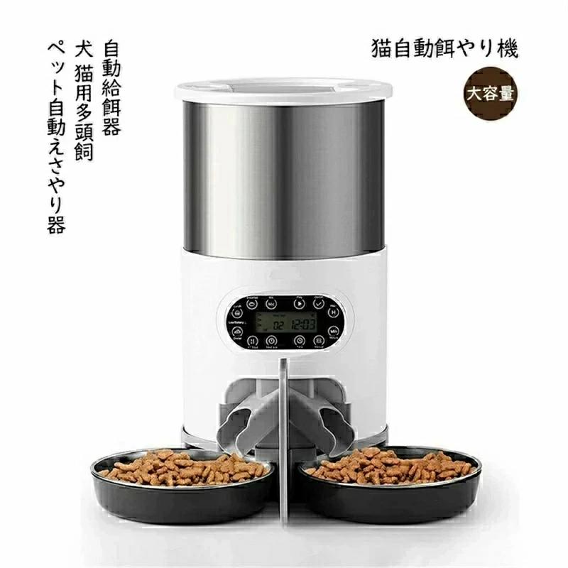 犬 猫用多頭飼 ペット自動えさやり器 猫自動餌やり機 大容量 手動給餌可 録音可 定時定量 1日4食 2Way給電 透明タンクで餌の残量確認可 ステンレス製トレ2個