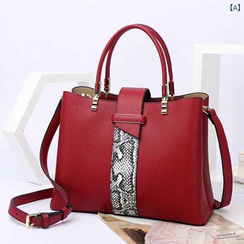 本 革 2024 女性 バッグ 新型 ファッション 蛇紋 牛革 中年 女性 ハンドバッグシンプルシングル 肩 斜め 掛け マザーズ バッグ
