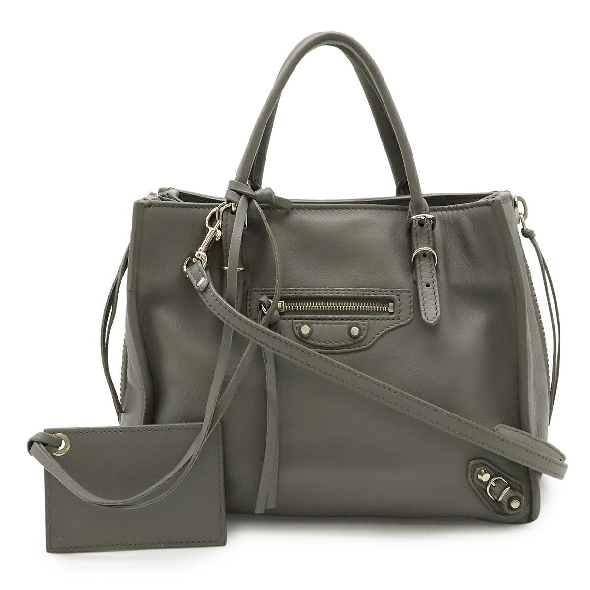 BALENCIAGA バレンシアガ ペーパー ミニ ハンドバッグ 2WAY ショルダーバッグ 斜め掛け レザー グレー シルバー金具 ミラー付き 357333 【中古】