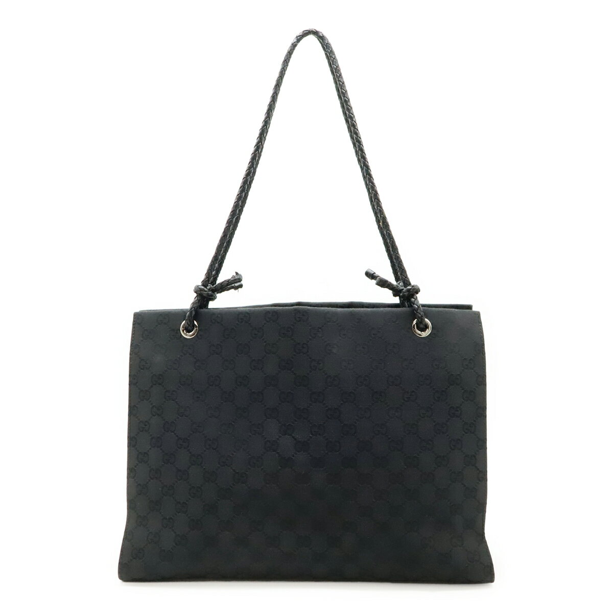 GUCCI グッチ GGキャンバス トートバッグ ショルダーバッグ 編み込みショルダー レザー ブラック 黒 シルバー金具 109140 【中古】