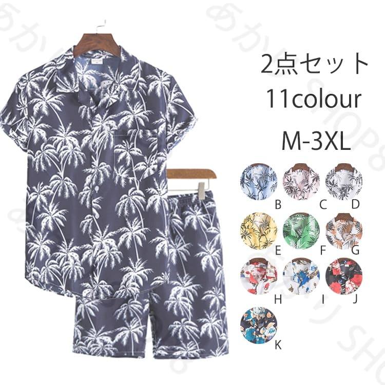 セットアップ 大きいサイズ ビーチシャツ 半袖シャツ アロハシャツ おしゃれ 2点セット ハーフパンツ メンズ ハワイシャツ 短パン 海辺 プリント Tシャツ 上下セット ボタニカル 旅行 ショートパンツ 通気性 カジュアル 軽量