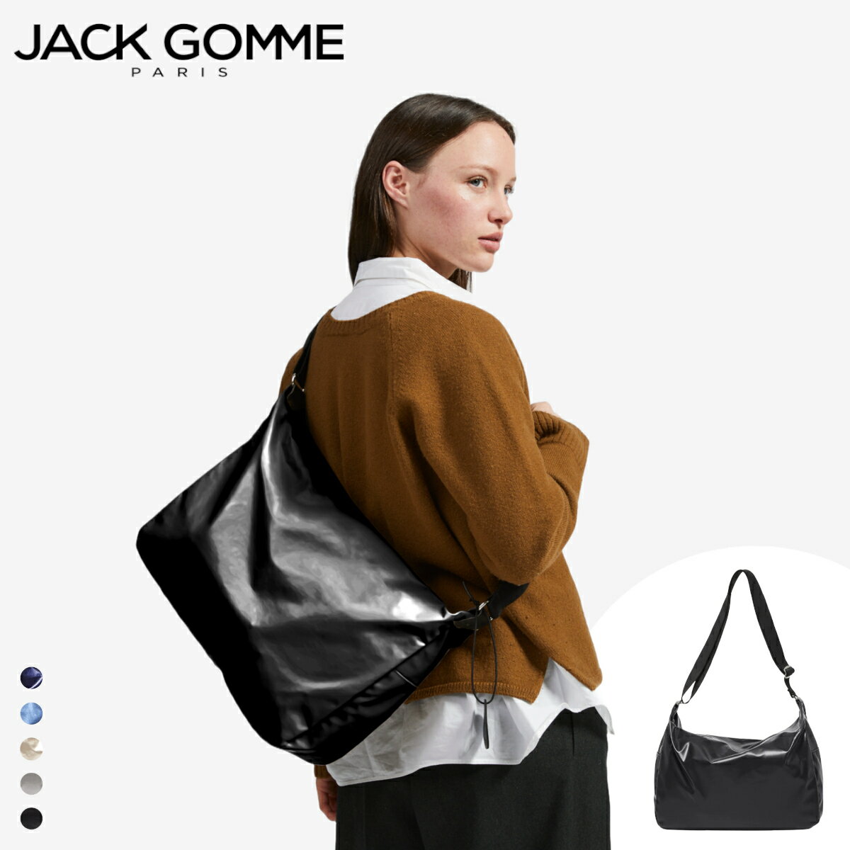 ジャックゴム ジョイ 1645 ライト オリジナル ショルダー バッグ クロス ボディ 300g A4 PC カジュアル シンプル ミニマル 大容量 肩 斜 掛け フランス製 ノワール メタル ナクレ モカ インディゴ JACK GOMME LIGHT ORIGINAL JOY SHOULDER BAG NOIR METAL NACRE MOKA INDIGO