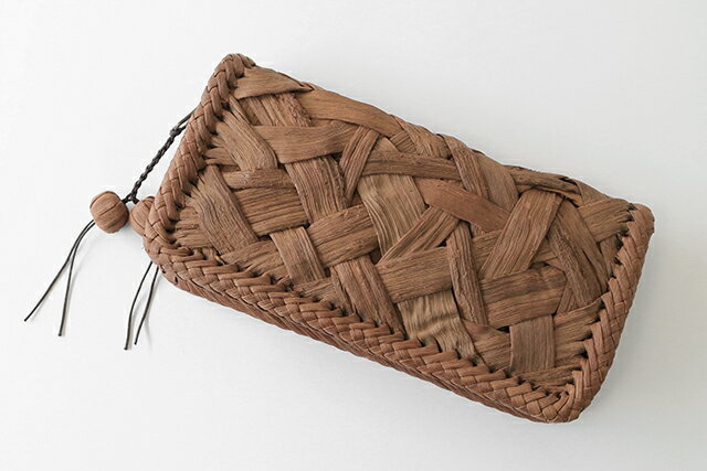 やまぶどう長財布(国産材/太ひご/みだれ編み/内側本革)(約)幅21×マチ4×高さ11cm(約)300g