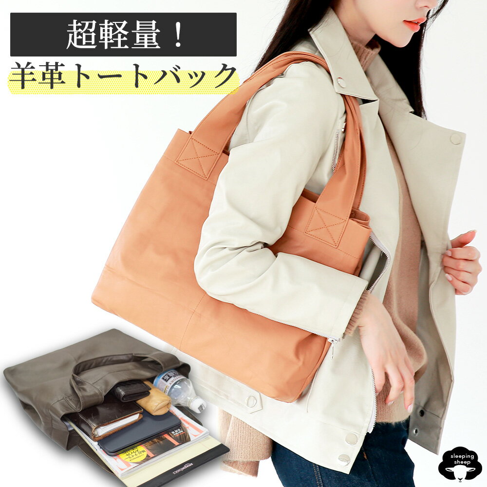 トートバッグ a4 超軽量 300g 日本製 ふんわり 本革 シープレザー やわらか シープ レザー 羊革 羊皮 底 ICカード ポケット付き ショルダートートバッグ 大きめ 大容量 おしゃれ レディース メンズ ペットボトルが縦に入る