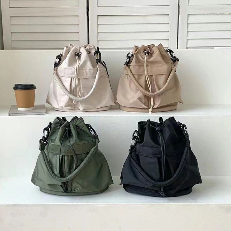 【2604円→実質2552円 P2利用! 11/27 01:59迄】バッグ バケツ ドローストリング ショルダーバッグ 肩掛け きれいめ おしゃれ 巾着 大人 かわいい 超軽量 300g 通勤 通学 旅行 日常 ポケット 男女兼用 韓国人気 プレゼント 送料無料 2WAYバッグ レディース 斜め掛け