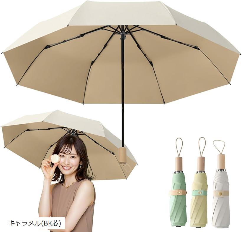 折り畳み傘 晴雨兼用 UVカット 日傘 レディース UPF50+ 遮光 遮熱 耐風撥水 8本骨 大きいサイズ 300g/SG芯(キャラメル(BK芯))