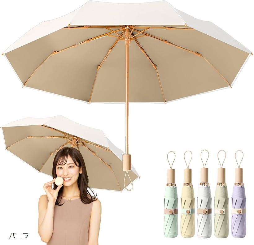 折り畳み傘 晴雨兼用 UVカット 日傘 レディース UPF50+ 遮光 遮熱 耐風撥水 8本骨 大きいサイズ 300g/SG芯 (バニラ)