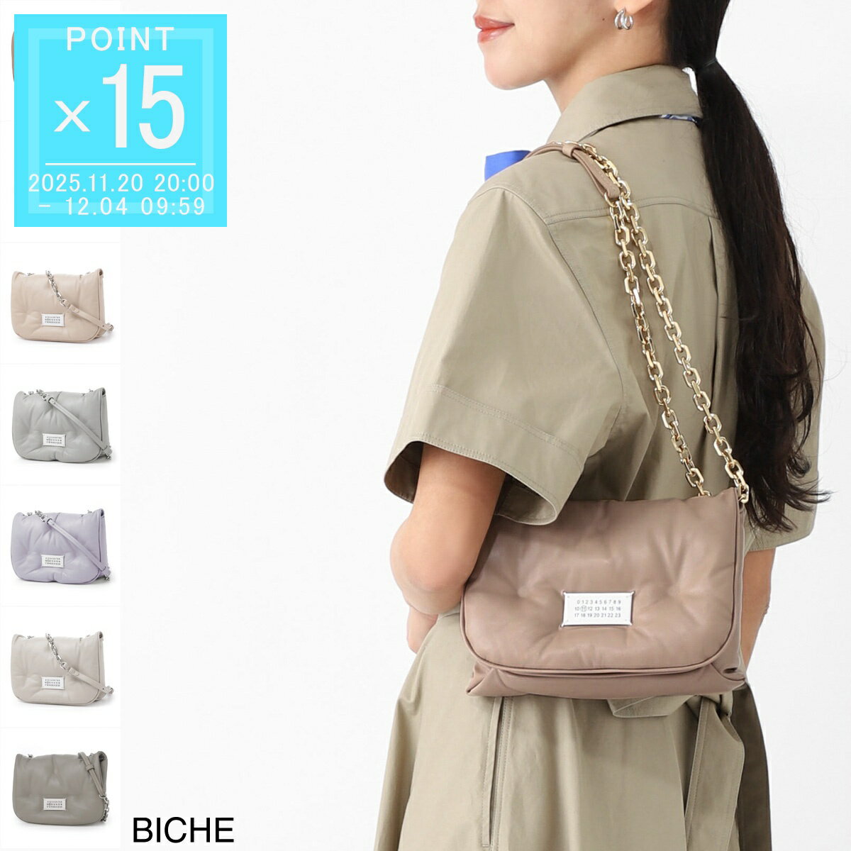 BRANDメゾンマルジェラ/Maison MargielaITEMショルダーバッグ/GLAM SLAM FLAP SMALLItem No.sb1wg0019-p4300, sb1wg0019-p4300-h9677, sb1wg0019-p4300, sb1wg0019-p4300-t8049, sb1wg0019-p4300, sb1wg0019-p4300, sb1wg0019-p4300管理: CCPNK CCGRY CCBEG CCBRN CCPUR TTWN Maison Margiela(メゾン マルジェラ)のショルダーバッグ「GLAM SLAM FLAP SMALL」。 丸みを帯びたキルテッドデザインが特徴で、2018年春夏コレクションから人気の「GLAM SLAM」シリーズのフラップバッグです。フロントにはナンバリングロゴラベルをあしらい、ブランドの存在感を演出。コンパクトながらマチがあり、スマートフォンや財布、カードなど必要なアイテムを収納可能です。 上質なレザー素材を採用し、ソフトな手触りと高級感を兼ね備えています。デイリーユースはもちろん、大切な方へのギフトとしても最適です。 特徴キーワード Maison Margiela Martin Margiela Margiela マルジェラ ショルダーバッグ GLAM SLAM FLAP SMALL キルテッド フラップバッグ ナンバリングロゴ レザー コンパクト レディース 20代 30代 40代 50代 ギフト プレゼントに最適 洗練されたデザインと使い勝手を兼ね備えたMaison Margielaの「GLAM SLAM FLAP SMALL」ショルダーバッグは、幅広い年代から支持されるおすすめの逸品です。メゾンマルジェラ/Maison Margiela ショルダーバッグ "GLAM SLAM FLAP SMALL"2018年春夏コレクションで登場以来その丸みを帯びたしなやかなフォルム、特徴的なキルテッドのデザインが人気を博している「GLAM SLAM グラム スラム」シリーズのショルダーバッグ。本作は小さめのお財布やスマートフォンなどをコンパクトに収納可能なスモールサイズです。柔らかくボリュームのあるキルトデザインのコロンとしたボディに、煌めくチェーンのハードさをプラス。お馴染みのナンバリングのタグをフロントにあしらいアクセントに。メゾンの世界観を存分に感じていただけるモード感溢れるアイテムです。【素材・風合い】シルクのような繊細なフルグレインナッパレザーを採用しており、ソフトな手触りをお愉しみいただけます。※素材の特性上、カレンダータグの印字に滲みや擦れが生じる場合がございます。また一部商品に、製造過程による「細かなキズや凹み」、輸送時による「箱の痛み」が見られることがありますが、製品としての品質には問題ございません。CORALLIGHTGREYCALCENUAGECREAMBICHEWISTERIAコンパートメント=1インナーポケット=1表地:羊革裏地:100%ポリエステル一部:カーフレザー有料ラッピング(200円税込)希望の方はこちら高さ上辺底辺奥行ショルダーハンドル重量FREEサイズ15.521.521.5613800.50kg
