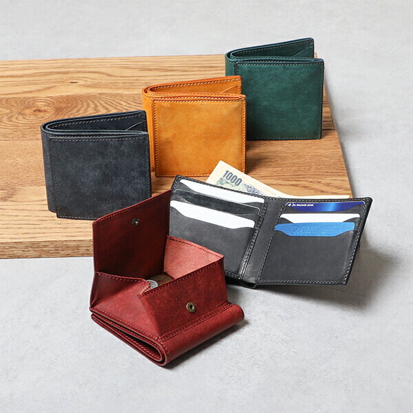 収納力抜群、機能性抜群のヒズファクトリーの二つ折り財布。何か足りない、これがあれば、を叶えてくれるのが二つ折り財布coprireです。coprireはイタリア語で覆うという意をもちます。充実したカードポケット数、箱型小銭入れ、お札入れ2箇所とコンパクト財布の中でも群を抜いて大容量入る二つ折り財布です。ヒズファクトリーは江戸時代からものづくりの街として伝統品を受け継ぐ職人が多い東京都墨田区に工房を持ち、オーダーメイド鞄も製作しています。見た目はシンプルで持つ人を選ばず幅広い年齢層から愛されています。coprire二つ折り財布の形状は、紙幣を仕訳ける2ポケットに、小銭は視認性が高く取り出ししやすい箱型、両面にカード入れと、嬉しい背面にもポケットが付きで、ICカードやすぐ取り出したいカードを入れておくにも便利なポケットです。革は、イタリア植物タンニン鞣し協会が認める”牛脂”を使用した”バケッタ製法”で作られたプエブロレザーを使用し、革表面の吟面を手作業で優しく擦り、細かな模様を付けて触り心地は和紙のような仕上がりです。使い込むとオイルが回り色艶が上がりますのでお手入れは不要の革財布です。 素 材 イタリア植物タンニン鞣し牛革、プエブロレザー、綿製作:日本 サイズ 約W9.5×H10.5×D3.0cm重量:約92g 【サイズ】 折りたたみ:10.5cm×9.5cm×3cm、開いた状態:18cm×10.5cm 【重さ】 92g 【素材】 プエブロ(イタリアの名門タンナー、バダラッシー・カルロ社による植物タンニンなめし牛革) 【生産国】 日本 【仕様】 名刺が入るカードポケットのサイズで、外側入れがついています