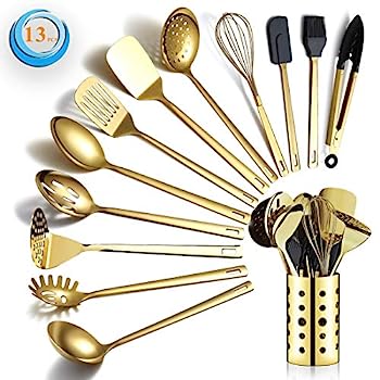 【中古】【輸入品・未使用】Berglander ゴールド調理用具セット ステンレススチール 13点 キッチン用品セット チタンゴールドメッキ付き キッチンツールセット キッチンツー