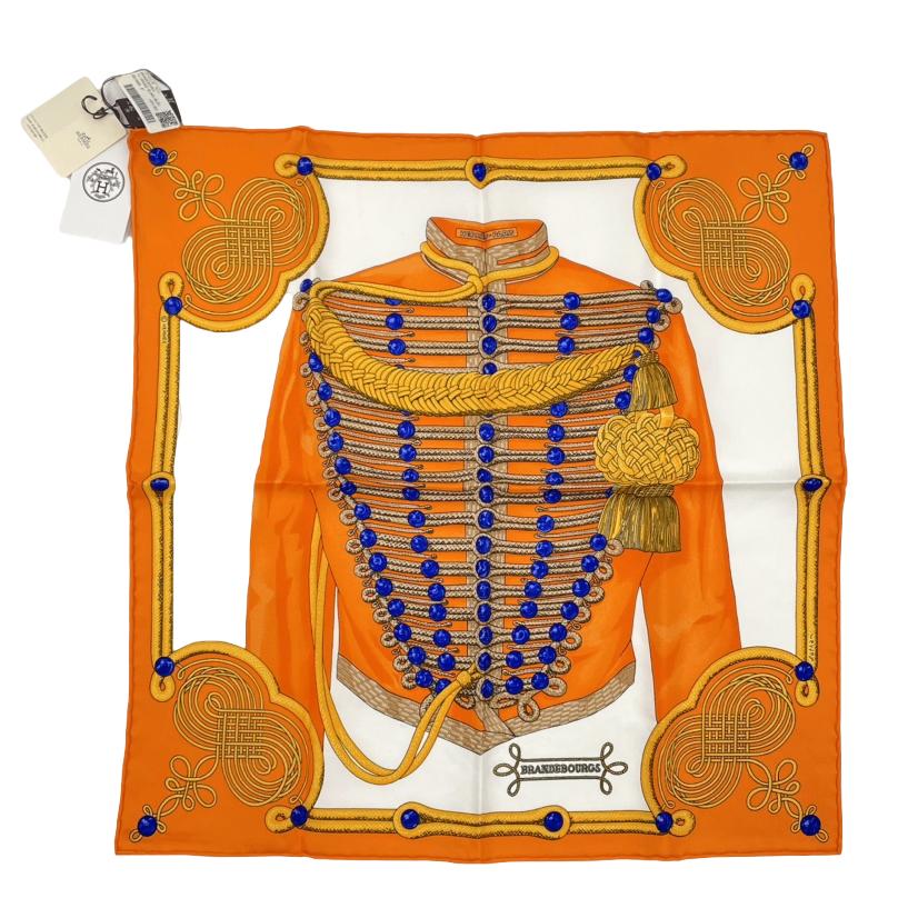 未使用品 HERMES エルメス BRANDEBOURGS ブランデンブルク飾り スカーフ シルク オレンジ