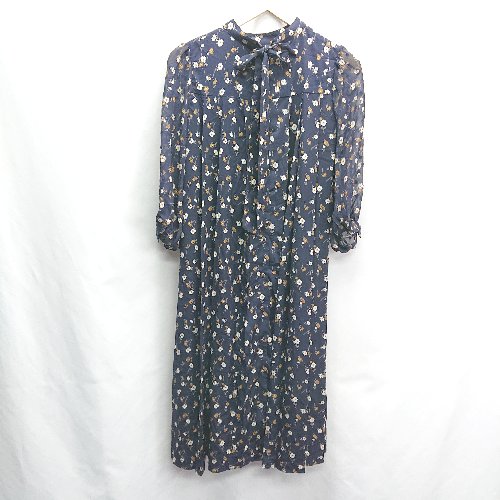 ◇ REDYAZEL レディアゼル 花柄 五分袖 膝下丈 ワンピース サイズM ネイビー系 レディース E 【中古】